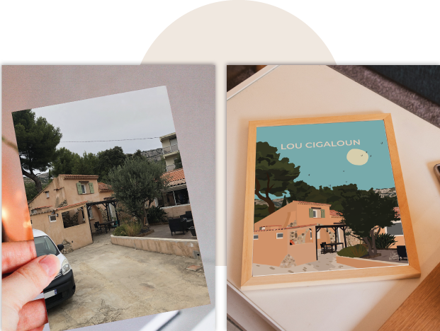 Transformez vos lieux, vos passions, votre maison évoquant vos souvenirs de vacances, de voyages, d’enfants en une illustration personnalisée.